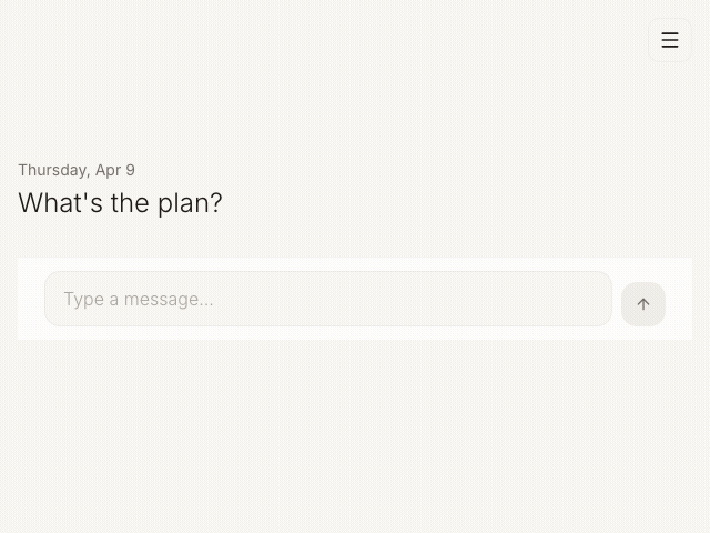 Kept takes whatever you said, breaks it down, and puts each piece where it fits in your day. You don’t organize anything. You don’t schedule anything. You just talk.