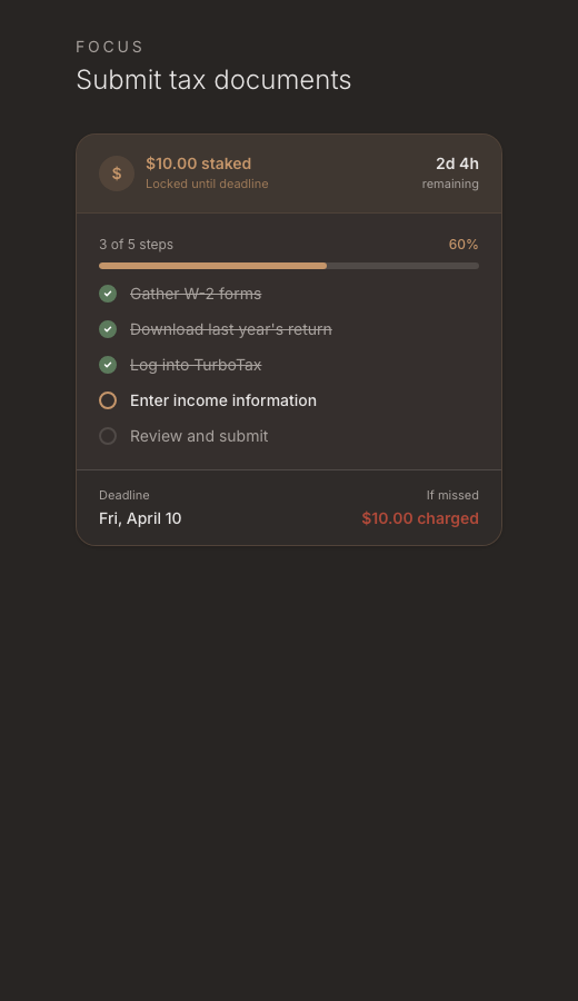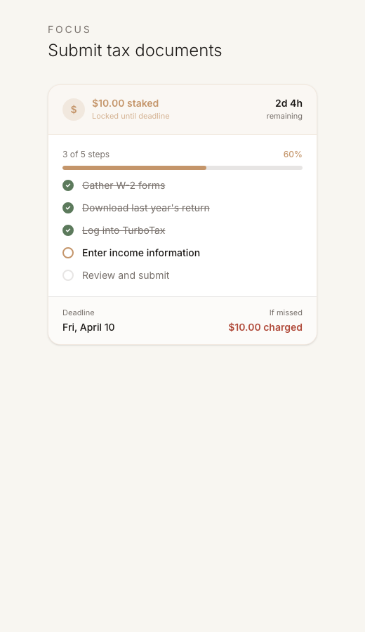 Monetary stakes, intelligent app blocking, and a real human focus partner make sure you follow through.
